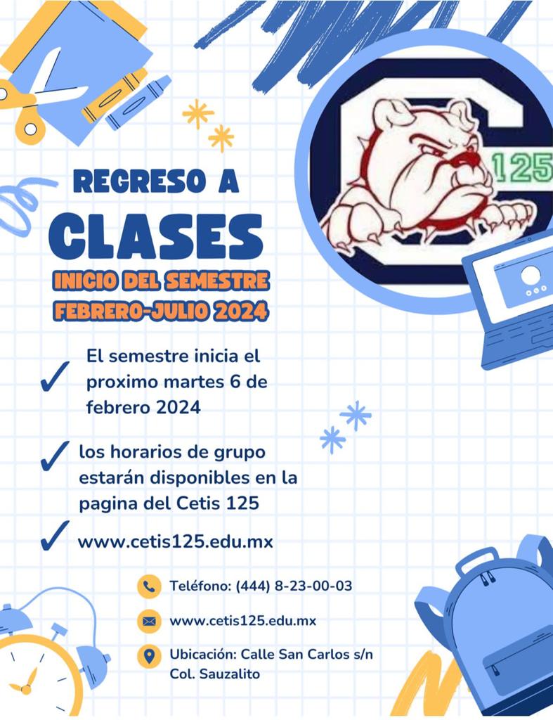 EL INICIO DE CLASES SERÁ EL DÍA MARTES 06 DE FEBRERO DEL 2024.
