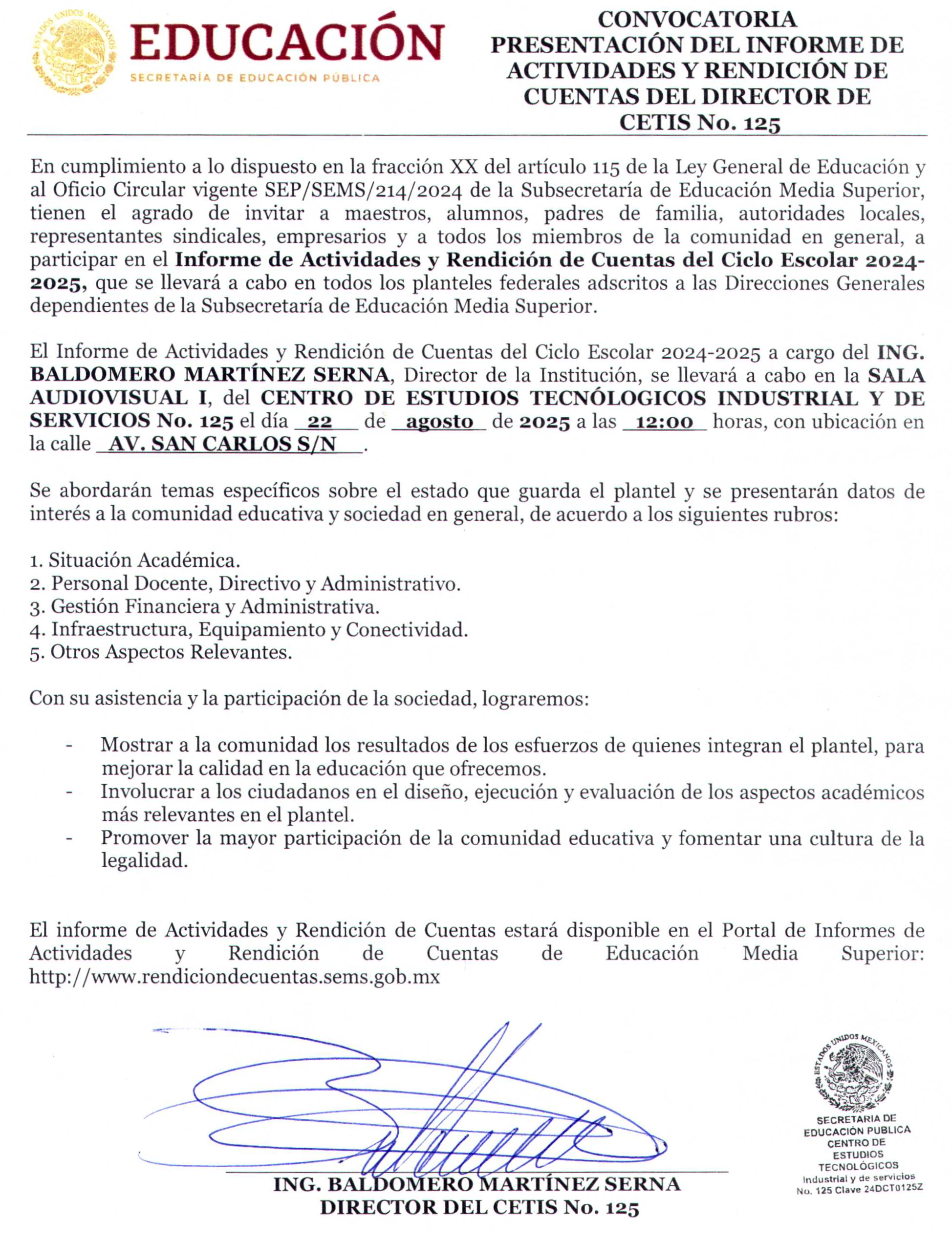 EL INICIO DE CLASES SERÁ EL DÍA LUNES 01 DE SEPTIEMBRE DEL 2025.