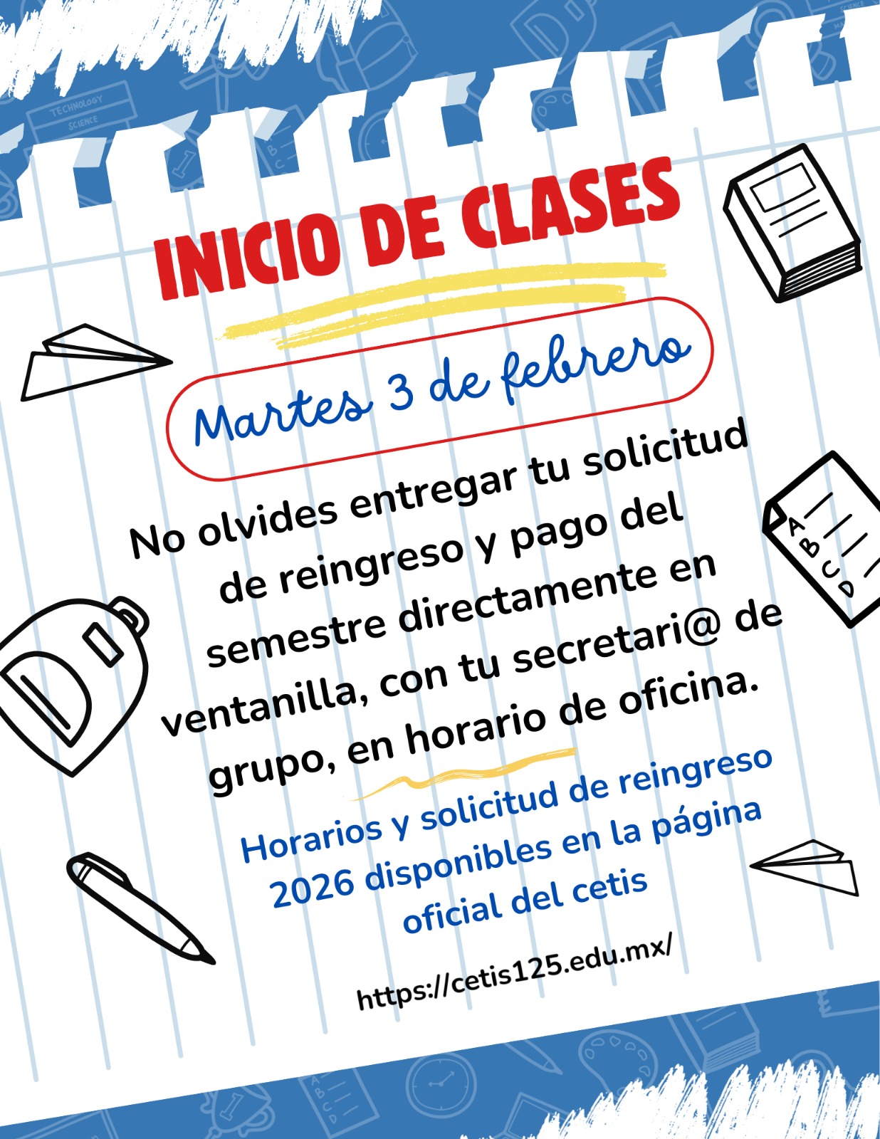 EL INICIO DE CLASES SERÁ EL DÍA MARTES 03 DE FEBRERO DEL 2026.